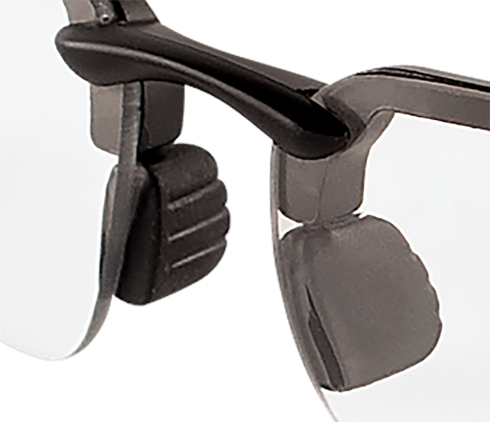 Bifocal reader style lenses feature a magnification diopter positioned at the bottom inside of the lens. This improves workplace safety by eliminating the need to switch between safety and reading glasses. In addition to lens correction, Swordfish® Readers safety glasses also feature an adjustable nose piece for increased comfort.